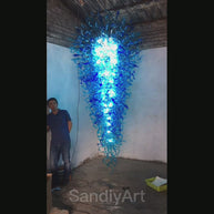 300cm tall hotel chandelier bule color hand made blown glass made Inspired by Chihuly