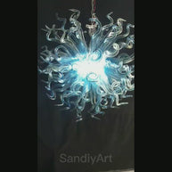 Blue gradient transparent handmade blown glass dining room light.The unique color combination of blue that changes from deep to light to transparent is very unique, and the light it emits seems to bring people into a dreamy and leisurely world. The dreamlike atmosphere makes people's hearts seem to be soothed and relaxed, immersed in this wonderful situation. Such a chandelier is undoubtedly a highlight in the space, adding a unique charm and mood to the place where it is.