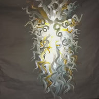 Custom modern design chandelier art hand blown glass pendant lights, white transparent with some golden glass, fashionable and modern style, very suitable for the decoration of villa staircases, hotel lobbies, exhibition halls. Custom modern design chandelier art hand blown glass pendant lights