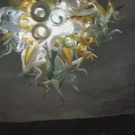 The choice of restaurant chandeliers is very important. A beautiful chandelier can bring people a pleasant mood and a comfortable dining environment. This elegant chandelier has a very beautiful color combination, luxurious gold, fashionable white, and quiet gray-blue, which is a very artistic chihuly style chandelier. Modern luxury art mouth blown glass chandeliers for dining room
