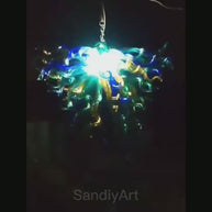 Custom color famous blown glass chandeliers dining room decoration.The perfect blend of blue, turquoise and amber makes this stunning chandelier a focal point for any space, while the flexibility of DIY customization allows you to create a unique lighting effect based on your personal preferences.