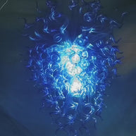 Dark blue blown glass modern chandelier villa decoration.The deep blue glass chandelier is like a miniature universe or a mysterious ocean. Its rich and deep blue color seems to contain endless mysteries and depths, making people's thoughts drift to the distant sky or the deep seabed.