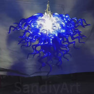 The dark blue glass chandelier emits a faint blue light, giving people a mysterious feeling.Dark blue color murano glass LED Pendant Light