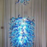Double layer hand made blown glass blue chandelier staircase Artist similar to Chihuly