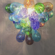 Grape shape design murano glass balls lighting home decoration.This chandelier, which looks like a bunch of delicious grapes, is made of glass balls of different colors. The glass balls are thick and crystal clear. When the light is turned on, the bright colors are just like grapes full of juice, which is pleasing to the eye. Whether it is quietly hung in the restaurant or decorated in the bedroom or living room, it adds endless charm and sweetness to the space.