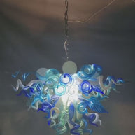 Hand made blown glass blue chandelier lighting art custom design