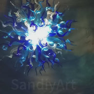 Light blue with dark blue blown glass chandelier round shape