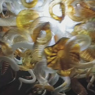 Luxury gold color contemporary blown glass chandeliers.The golden luxury and transparent purity complement each other, presenting a crystal clear texture. The beautiful flower horn shape mixed in it adds a unique artistic charm to it. When it emits golden light, the luxurious and elegant atmosphere comes to your face, making people intoxicated.