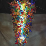 A large chandelier made of hand-made glass shapes such as curved pipes, horns, flowers, and goose necks. It is colorful and bright, very artistic, and suitable for the decoration of villas and hotel lobbies. Everyone who sees it will be amazed. It is very spectacular.Luxury hand made villa chandelier murano glass.