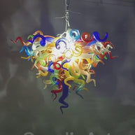 Mini hand blown glass chandelier multicolor for bedroom.If you like unique designs, you can choose some creative and individual colored glass chandeliers, such as this chandelier with irregular shapes of colored glass. The warm tones can create a warm and comfortable feeling, while the bright colors can add vitality and freshness.