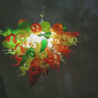 Multicolor blue blown glass chandelier dining room decoration.The different shades of green and bright orange set off each other, creating a vibrant and unique color atmosphere. The peculiar shapes such as horns and bubble balls mixed in add endless fun and unique charm to the chandelier. The combination of these peculiar elements makes the chandelier no longer an ordinary lighting tool, but a work of art that flaunts individuality. It seems to tell people about uninhibitedness and innovation, and every angle shows a unique style.