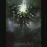 Specail custom design hand made black blown glass chandelier.This black chandelier is a rare lighting fixture, which is carefully made of black colored glass and presents a very artistic appearance. Its mysterious and deep appearance seems to make people fall into a dark atmosphere, but in this darkness, it quietly breeds the dawn of hope, exuding a unique and charming charm that is unforgettable.